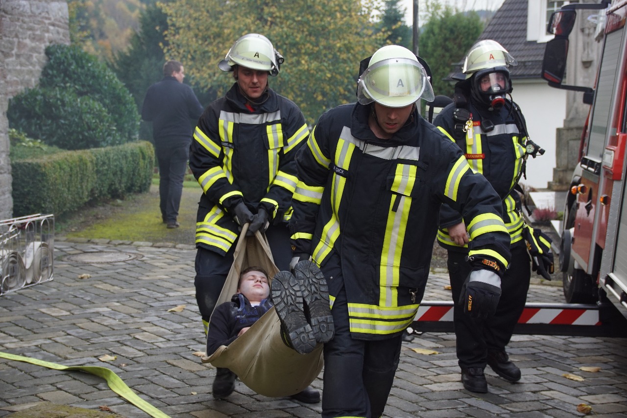 Am vergangenen Samstag Nachmittag fand die Abschlussübung der Löschgruppe Helden statt. Gegen 16 Uhr wurden die Einsatzkräfte über Funkmeldeempfänger und die Sirene alamiert. Angenommen wurde, dass es im Glockenturm der katholischen Kirche in Helden zu einem Schwelbrand durch Wartungsarbeiten gekommen war, zwei Personen wurden vermisst.