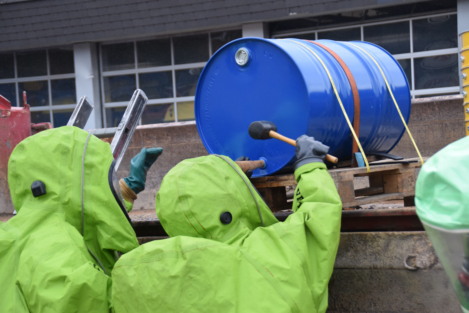 Nachdem die Rettungswagenbesetatzung des Rettunsgdienstes des Kreises Olpe eine Erstversorgung des Patienten in dem PKW durchgeführt hatte, wurde dieser durch die Feuerwehr mit hydraulischen Rettungsgeräten befreit. Parallel dazu gingen zwei Trupps unter Chemikalienschutzanzügen vor, um den austretenden Gefahrstoff in Wannen aufzufangen und das Fass abzudichten.