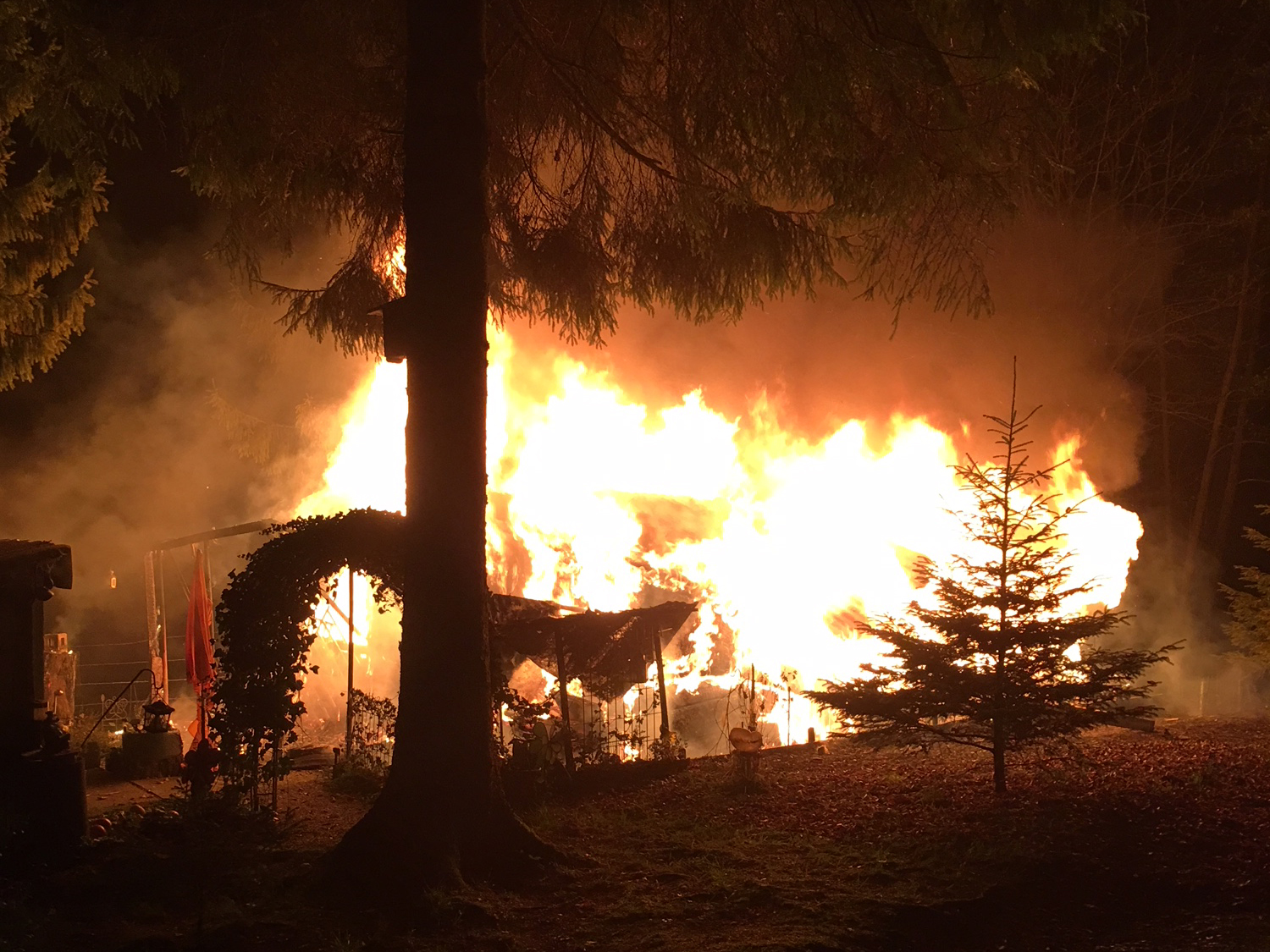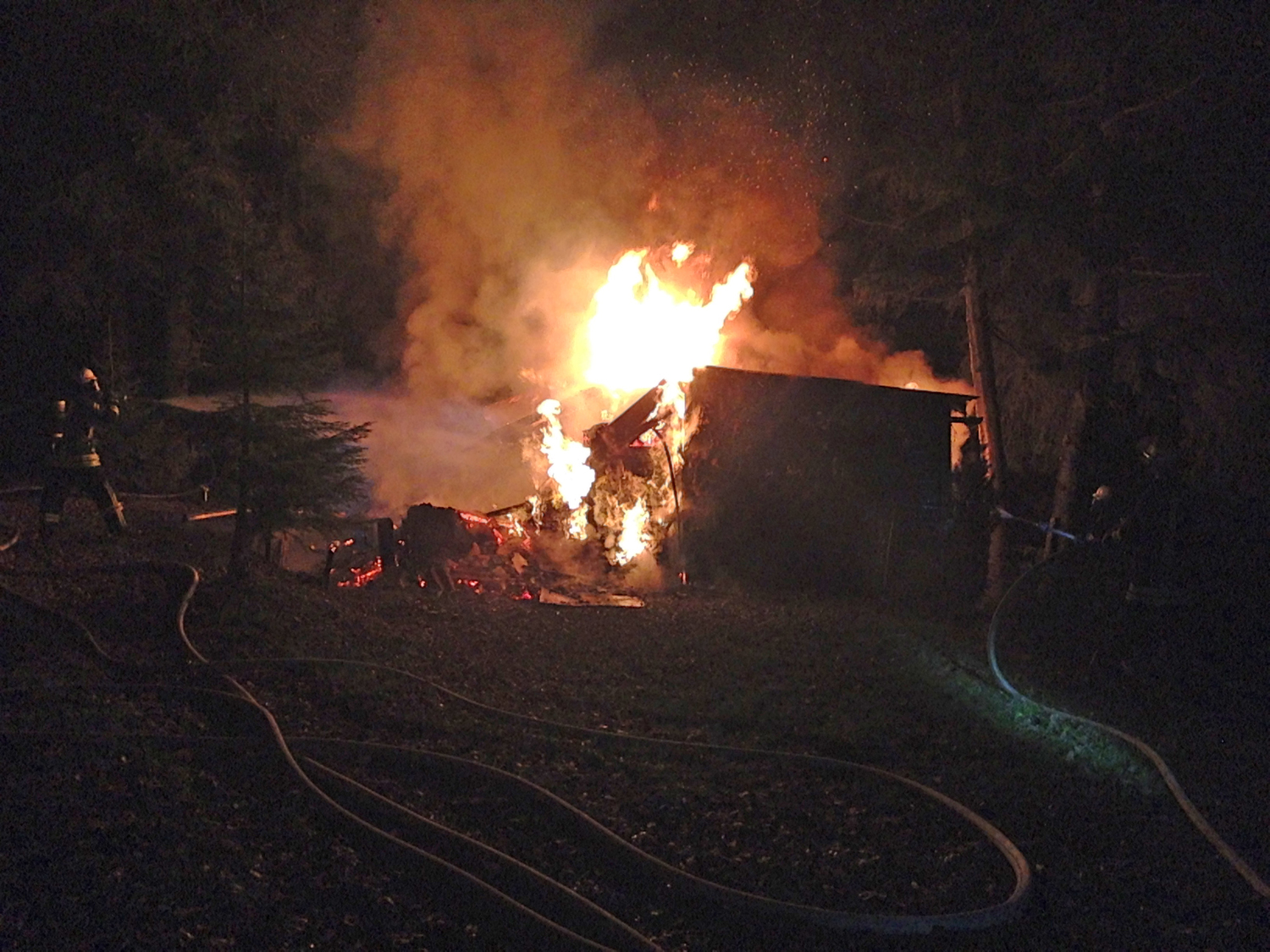 Die Ausbreitung des Feuers auf das angrenzende Waldstück konnte verhindert werden, der Verlust des Gebäudes war jedoch nicht mehr zu vermeiden.