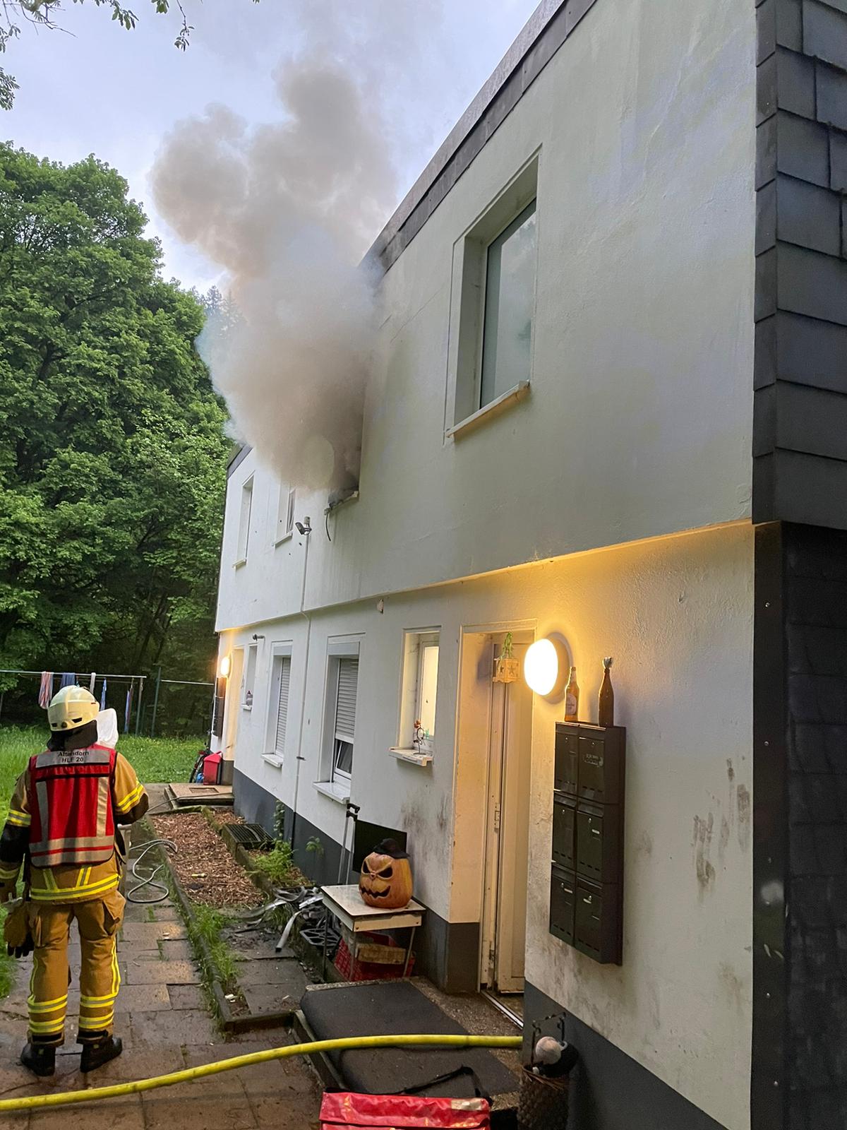 Beim Eintreffen der ersten Kräfte brannte ein Zimmer in einer städtischen Unterkunft in voller Ausdehnung. Ein Bewohner hatte sich beim Sprung aus einem Fenster schwer verletzt und wurde durch den Rettungsdienst medizinisch versorgt und anschließend dem Krankenhaus Attendorn zugeführt.