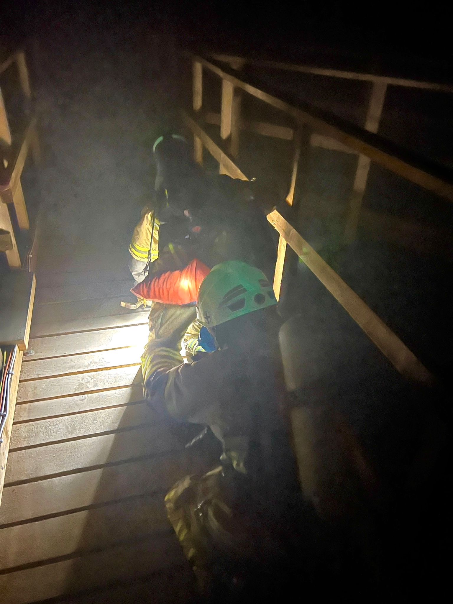 In schweißtreibender Arbeit wurden beide vermissten Personen durch die Angriffstrupps in einen sicheren Bereich des Turmes gerettet, dort medizinisch erstversorgt und im Anschluss zur Übergabe an den Rettungsdienst ins Freie verbracht.