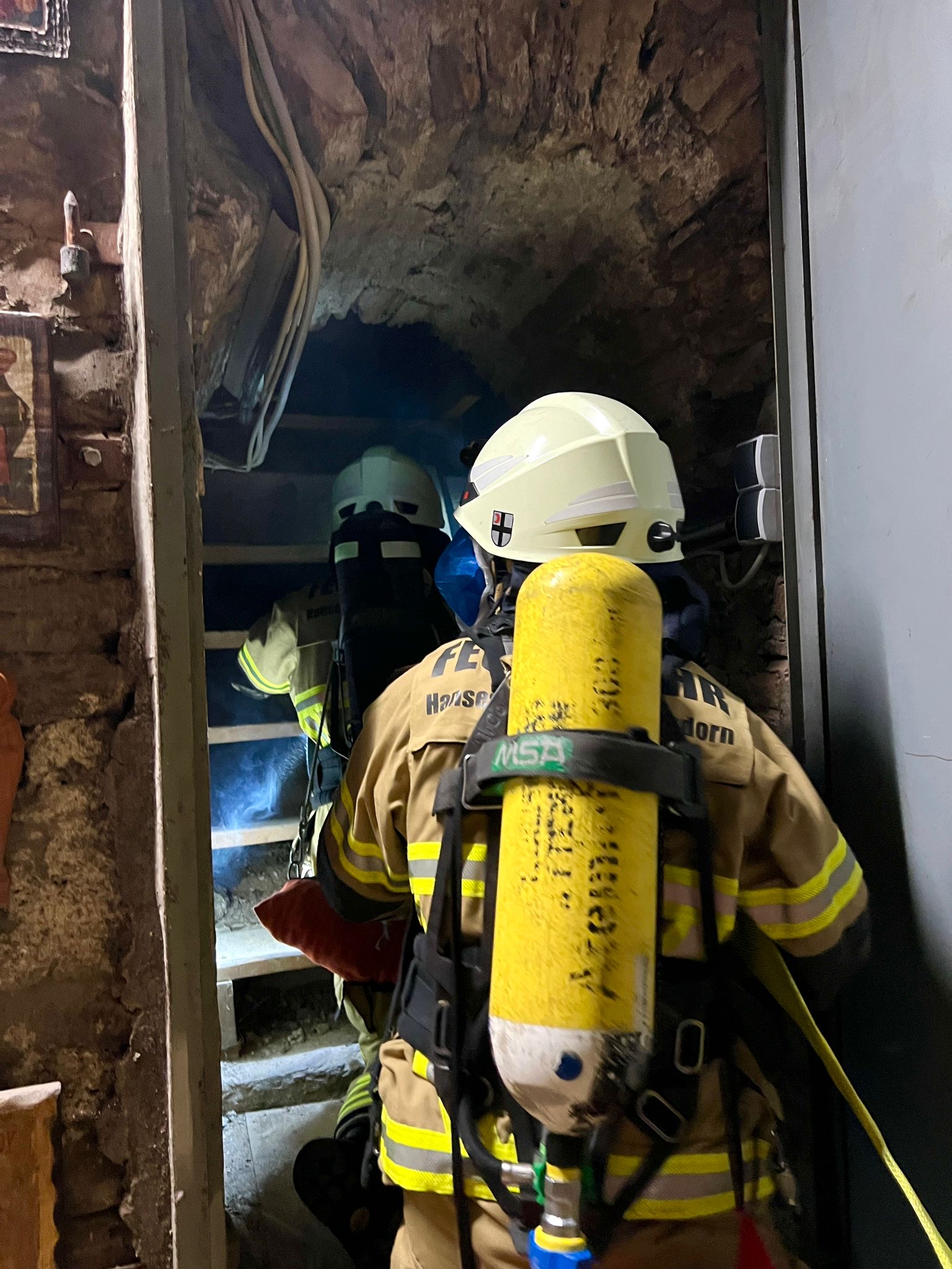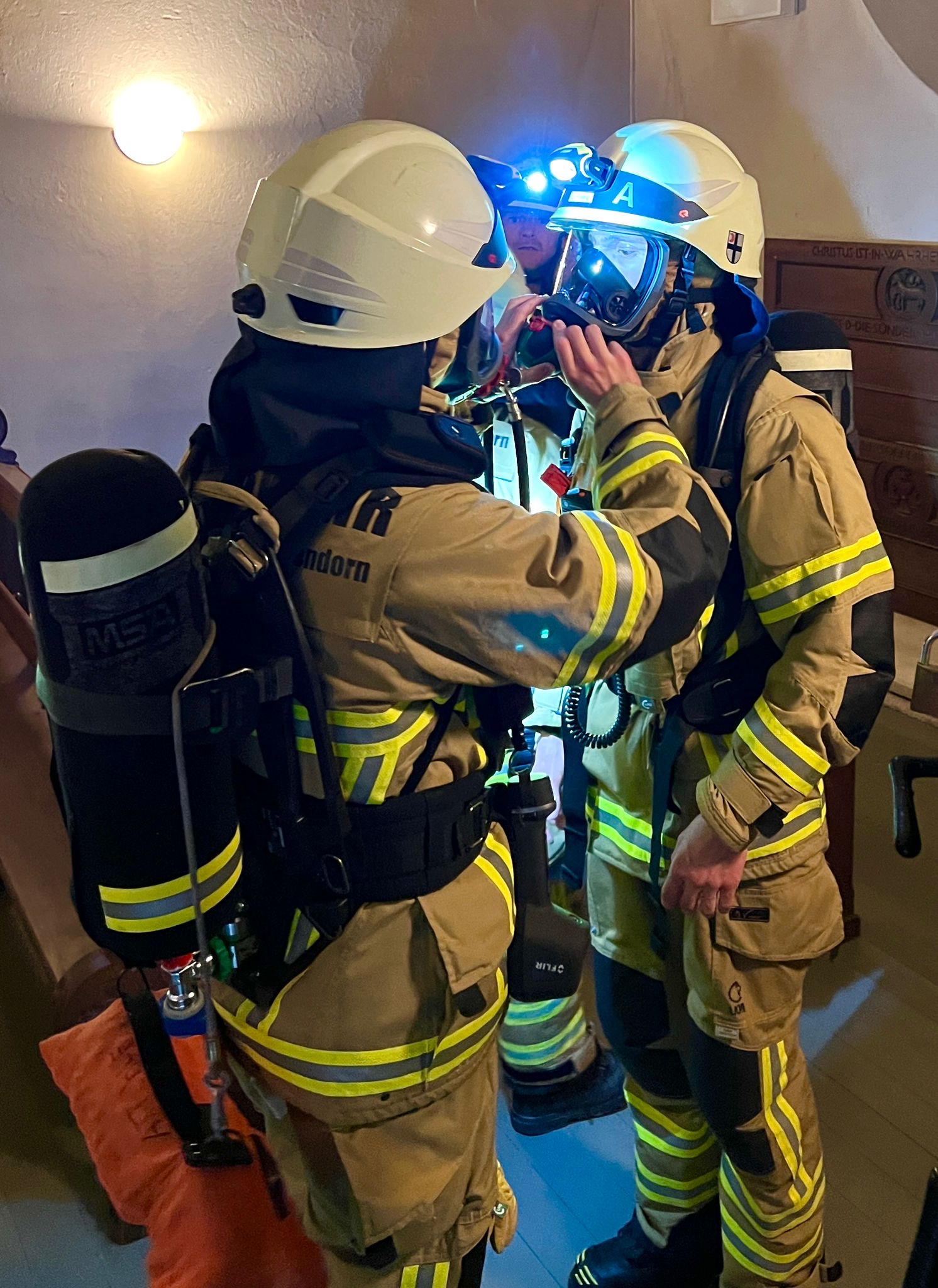 Nach einer ersten Erkundung vor Ort begann für die Einsatzkräfte der mühsame Aufstieg über die engen und steilen Treppen des Glockenturms, der im 13. Jahrhundert errichtet wurde. Der sogenannte Chorraum wurde zunächst als Depotgeschoss eingerichtet, wie man es eigentlich aus der Brandbekämpfung in Hochhäusern kennt. Ausgehend von diesem „Materiallager“ und nach einem weiteren Aufstieg durch den Turm in den Dachstuhl wurde dann der Einsatz zur Menschenrettung und Brandbekämpfung gestartet.