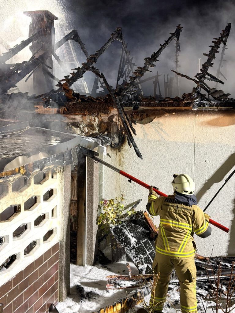 Die umfangreichen Nachlöscharbeiten zogen sich bis in die frühen Morgenstunden hin. Trotz des schnellen und umfassenden Eingreifens der Feuerwehr war ein Totalverlust des Gebäudes bereits zum Zeitpunkt des Eintreffens nicht mehr zu verhindern.