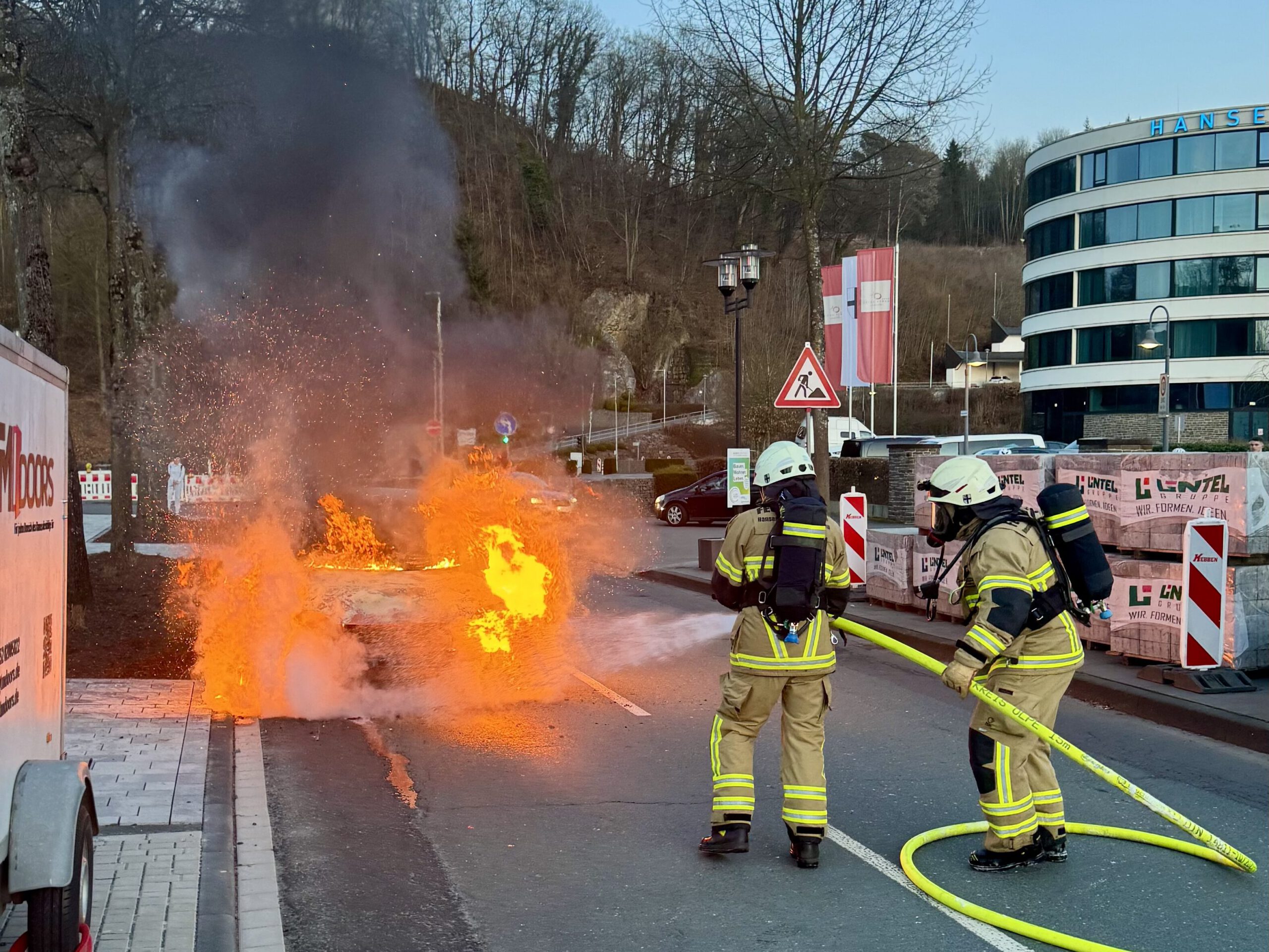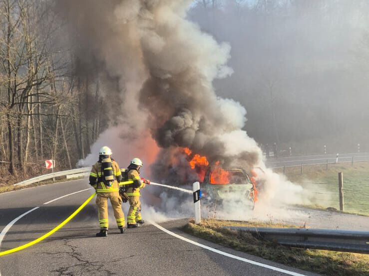 Die Feuerwehr Attendorn wurde am heutigen Mittwoch zu zwei Fahrzeugbränden gerufen. Um 08:23 Uhr wurde der Löschzug Repetal auf die L 697 zwischen dem OT Helden und Attendorn alarmiert. Beim Eintreffen brannte ein Fahrzeug in voller Ausdehnung. Zwei Trupps unter Atemschutz konnten das Feuer unter Kontrolle bringen. Im Rahmen der Nachlöscharbeiten wurde auch Schaum eingesetzt um letzte Glutnester zu ersticken.