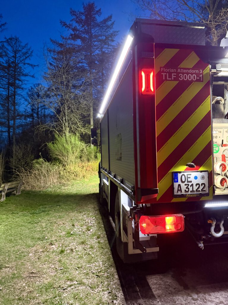 Nach intensiver Suche sowie durch Hinweise des Meldenden konnte die Einsatzstelle in einem schwer zugänglichen Waldgebiet lokalisiert werden.