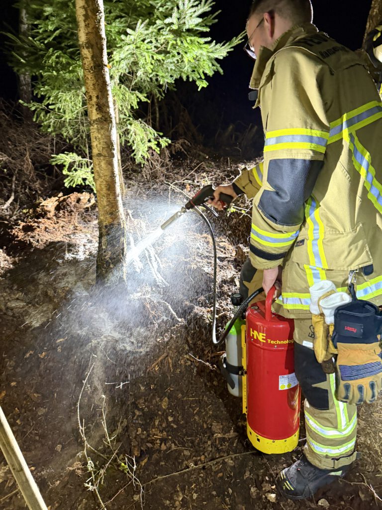 Mit Kleinlöschgerät und Löschrucksäcken konnte das Feuer schnell unter Kontrolle gebracht und eine weitere Ausbreitung verhindert werden.
